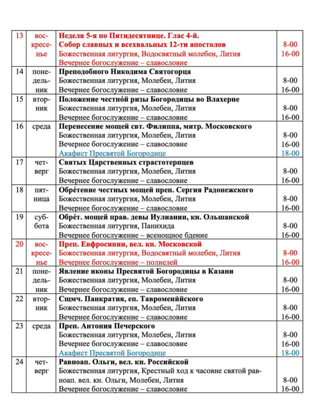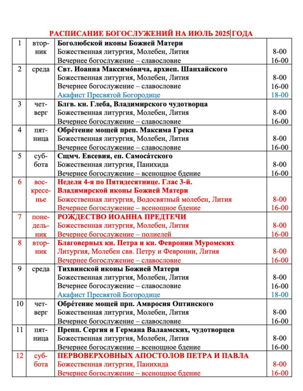 Исповедь совершается в будни во время богослужения, на всенощном бдении в субботу, в воскресенье с 9:30, с началом чтения часов
